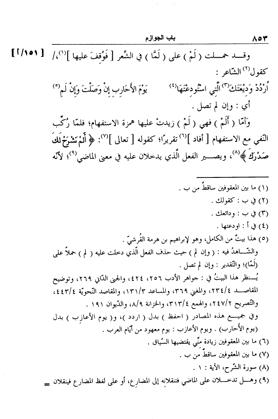 وقد حملت (لَمْ) على (لَمَّا) في الشِّعر [فَوُقِفَ عليها] 1،كقول2 الشّاعر: [151/أ]