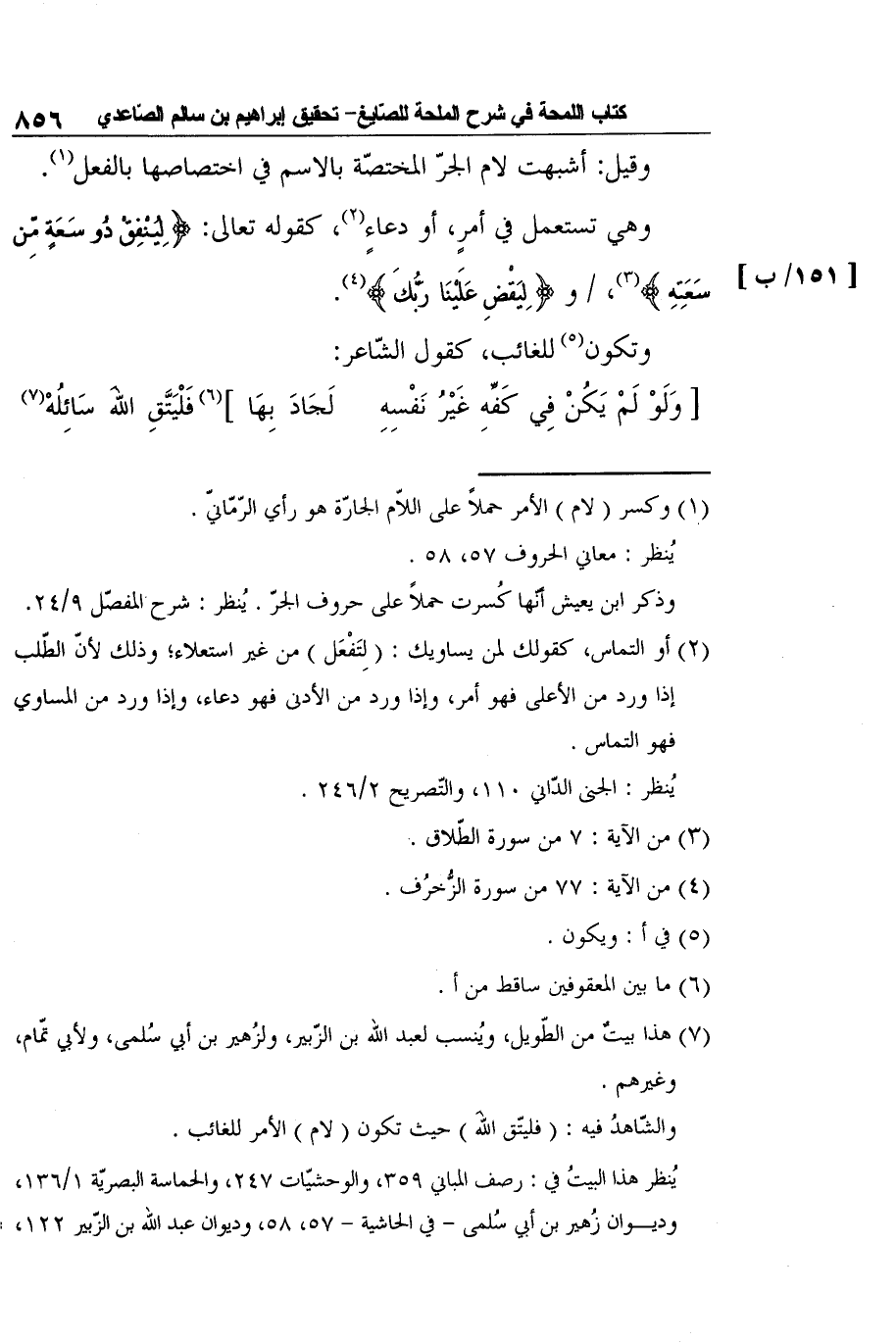 1 وكسر (لام) الأمر حملاً على اللاّم الجارّة هو رأي الرّمّانيّ.