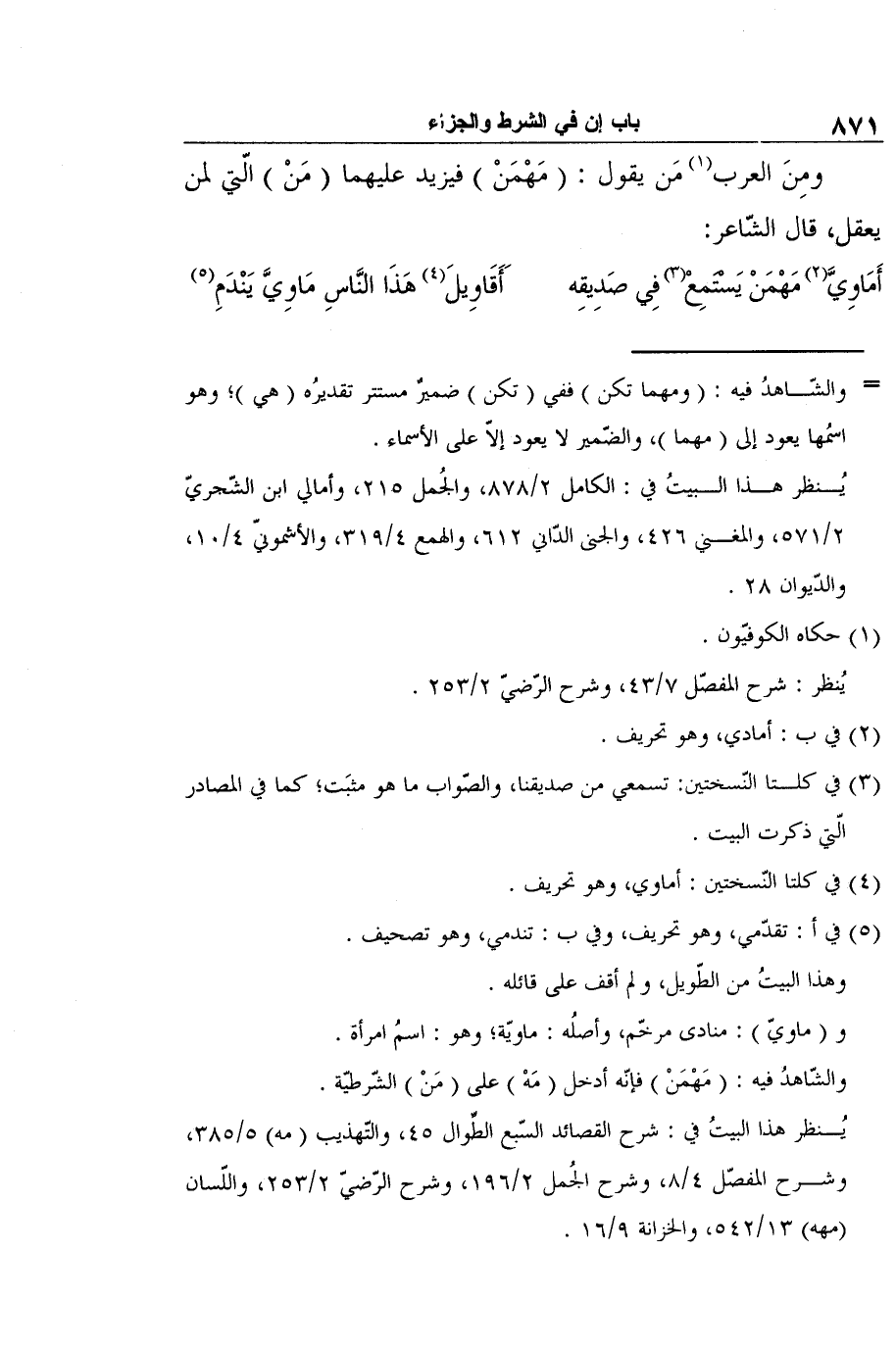 والشّاهدُ فيه: (مَهْمَنْ) فإنّه أدخل (مَهْ) على (مَنْ) الشّرطيّة.