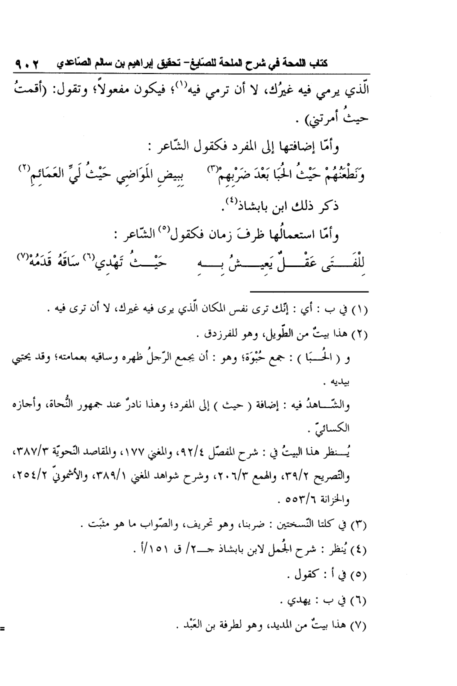 والشّاهدُ فيه: إضافة (حيث) إلى المفرد؛ وهذا نادرٌ عند جمهور النُّحاة، وأجازه الكسائيّ.