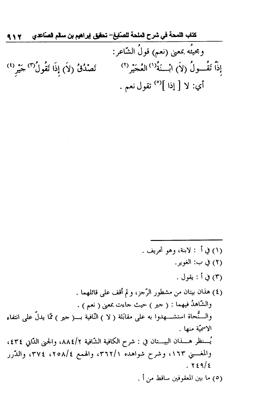 إِذَاً تَقُولُ (لاَ) ابْنَةُ1 العُجَيْر2 ... تَصْدُقُ (لاَ) إِذَا تَقُولُ3 جَيْرِ4
