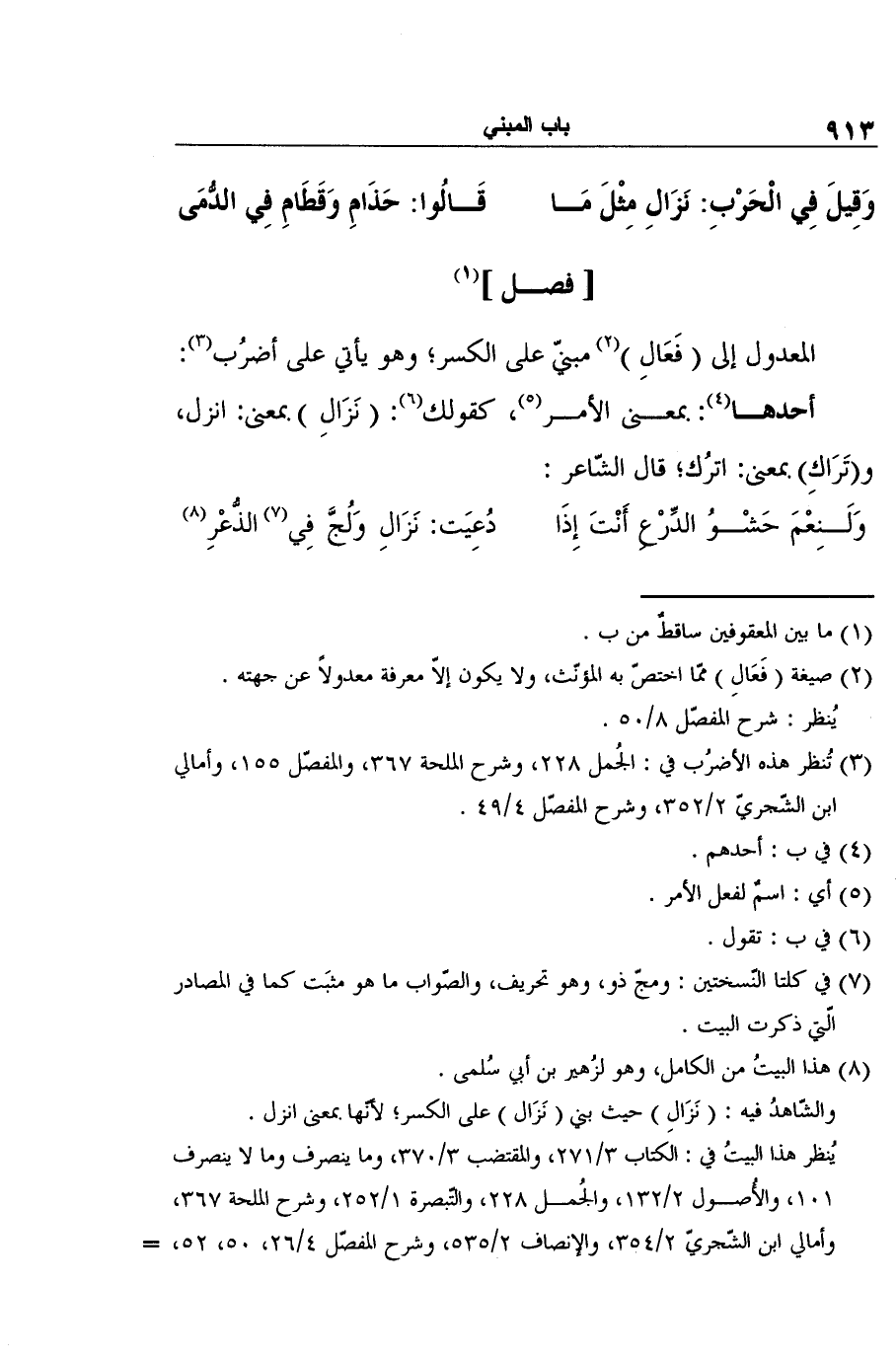 3 تُنظر هذه الأضرُب في: الجُمل 228، وشرح الملحة 367، والمفصّل 155، وأمالي ابن الشّجريّ 2/352، وشرح المفصّل 4/49.