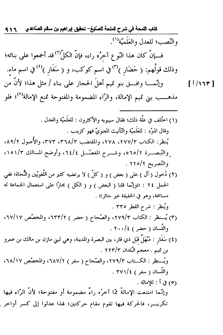 وإنّما وافق بنو تميم أهلَ الحجاز على بناء مثل هذا؛ لأنّ من مذهب بني تميم الإمالة، والرّاء المضمومة والمفتوحة تمنع الإمالة5؛ فلو [163/أ]