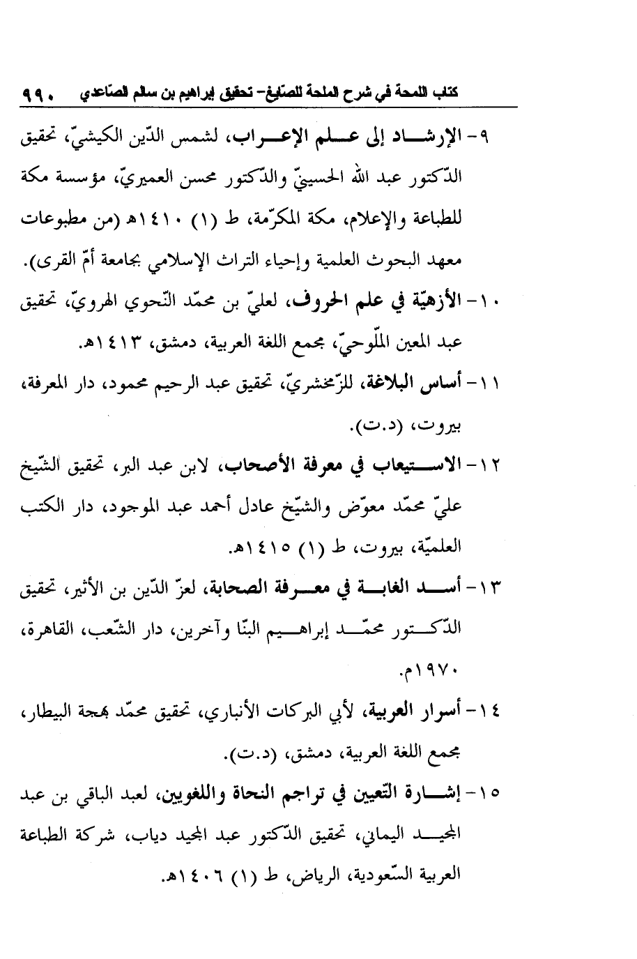 15- إشارة التّعيين في تراجم النحاة واللغويين، لعبد الباقي بن عبد المجيد اليماني، تحقيق الدّكتور عبد المجيد دياب، شركة الطباعة العربية السّعودية، الرياض، ط (1) 1406هـ.