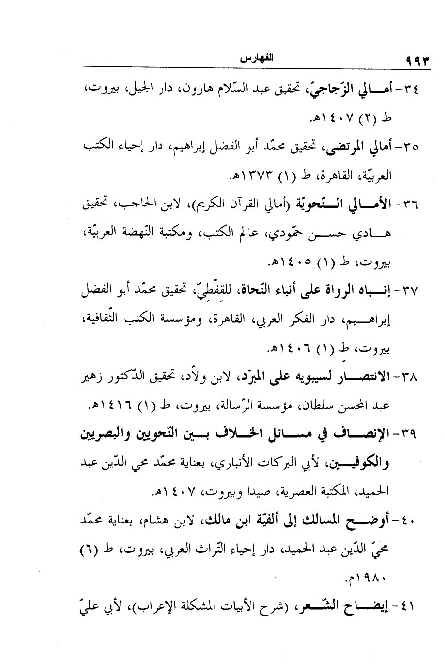 37- إنباه الرواة على أنباء النّحاة، للقِفْطِيّ، تحقيق محمّد أبو الفضل إبراهيم، دار الفكر العربي، القاهرة، ومؤسسة الكتب الثّقافية، بيروت، ط (1) 1406هـ.