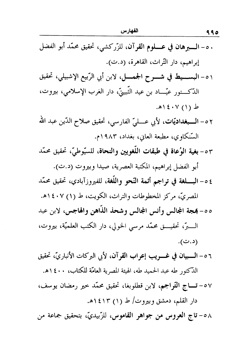 53- بغية الوُعاة في طبقات اللّغويين والنحاة، للسيّوطيّ، تحقيق محمّد أبو الفضل إبراهيم، المكتبة العصرية، صيدا وبيروت (د. ت) .