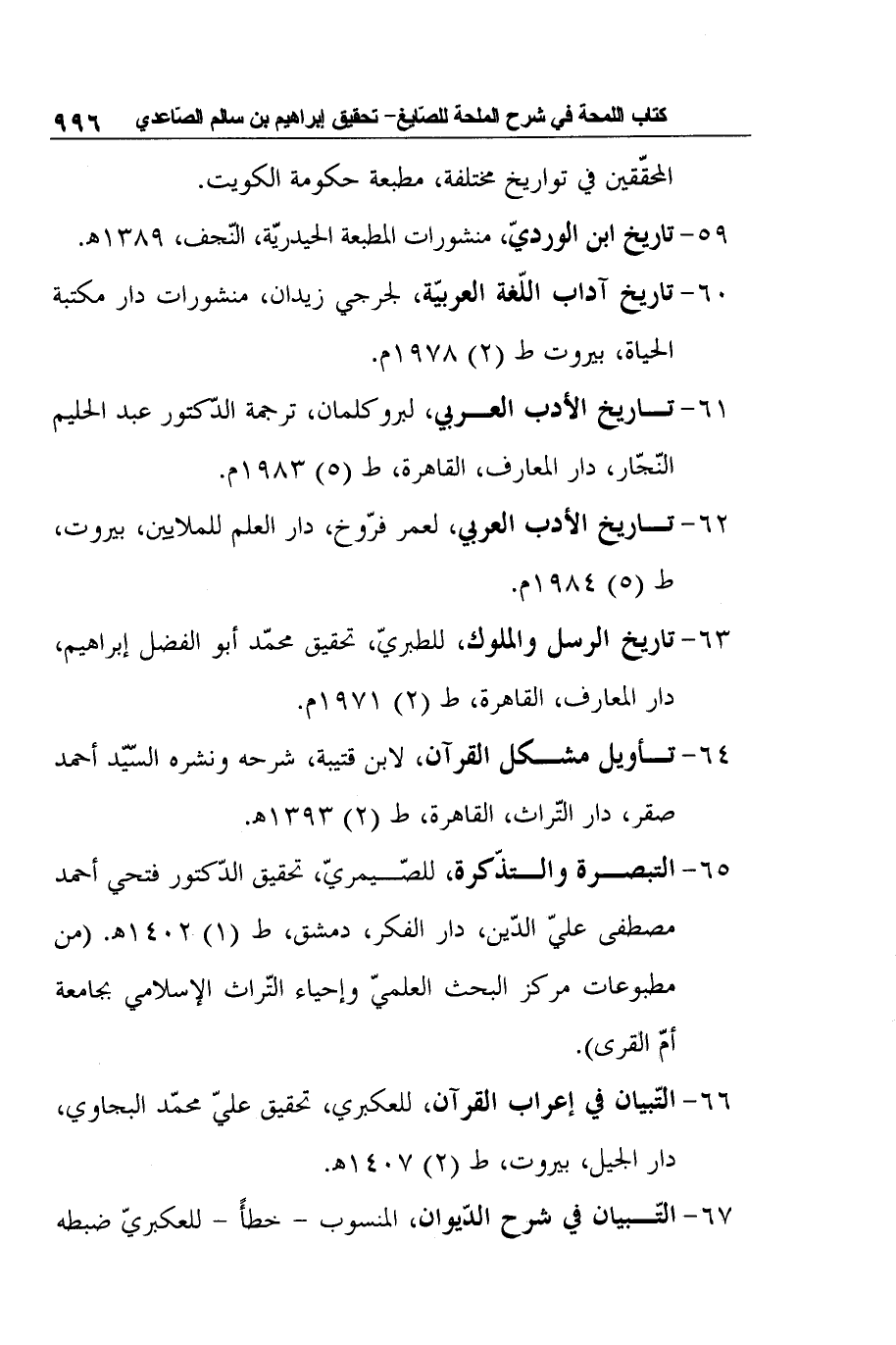 66- التّبيان في إعراب القرآن، للعكبري، تحقيق عليّ محمّد البجاوي، دار الجيل، بيروت، ط (2) 1407هـ.