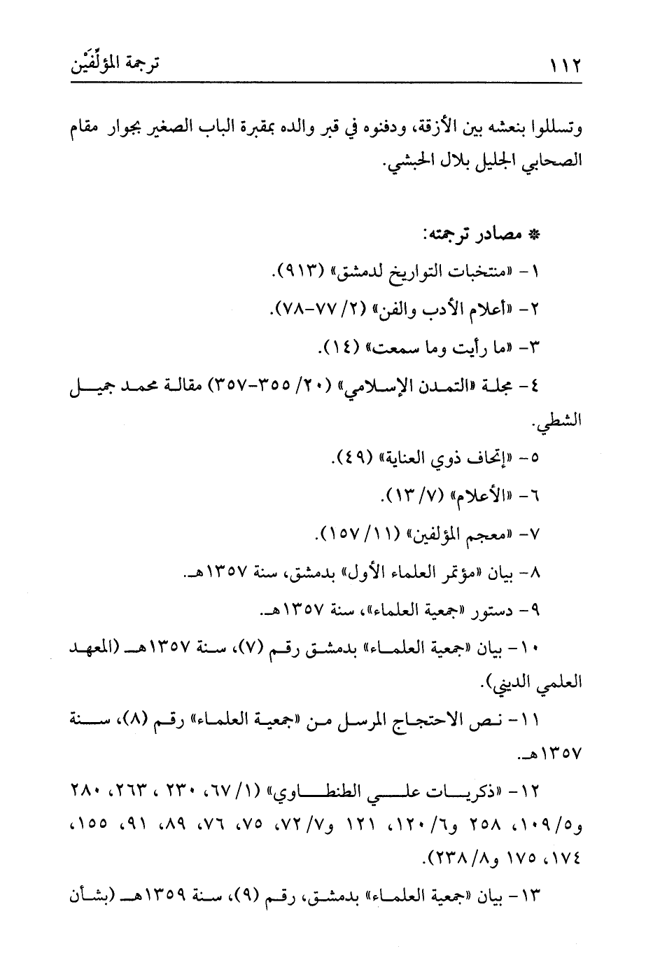 4- مجلة «التمدن الإسلامي» (20/355-357) مقالة محمد جميل الشطي.