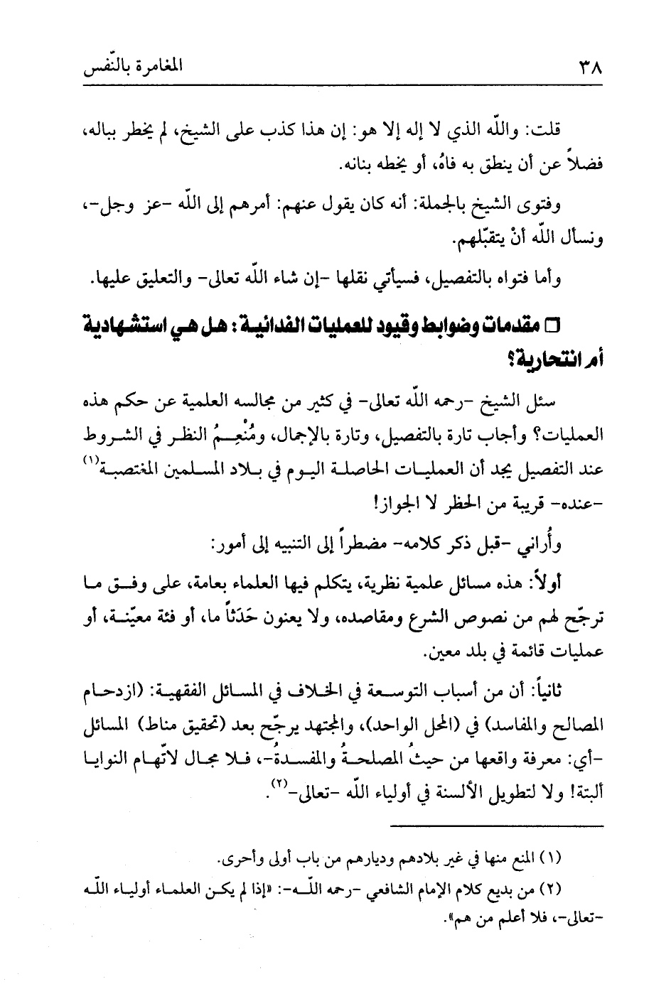 * مقدمات وضوابط وقيود للعمليات الفدائية: هل هي استشهادية أم انتحارية؟