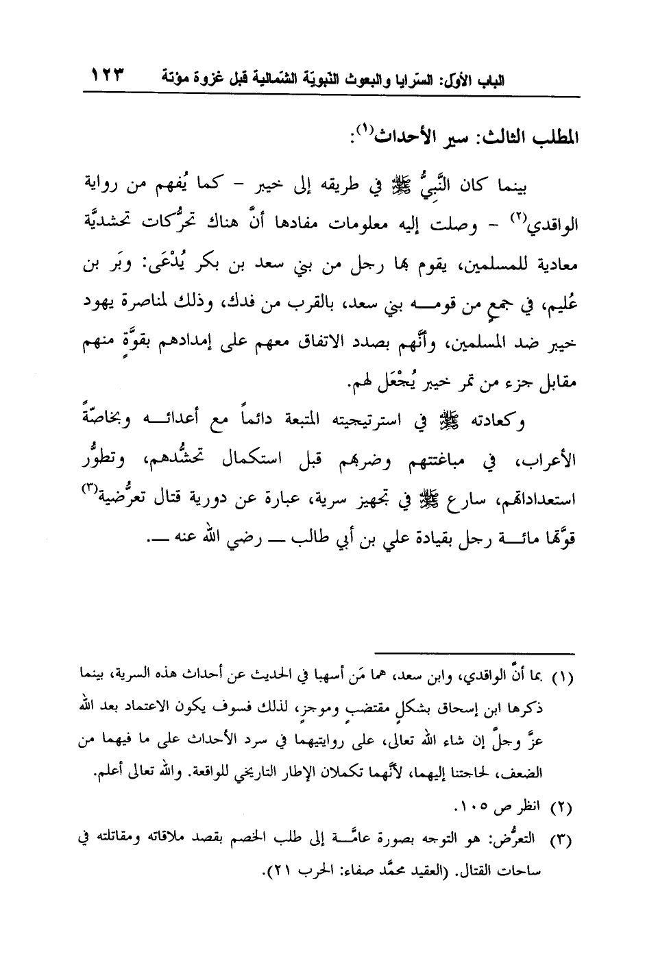 1 بما أنَّ الواقدي، وابن سعد، هما مَن أسهبا في الحديث عن أحداث هذه السرية، بينما ذكرها ابن إسحاق بشكلٍ مقتضبٍ وموجزٍ، لذلك فسوف يكون الاعتماد بعد الله عزَّ وجلَّ إن شاء الله تعالى، على روايتيهما في سرد الأحداث على ما فيهما من الضعف، لحاجتنا إليهما، لأنَّهما تكملان الإطار التاريخي للواقعة. والله تعالى أعلم.