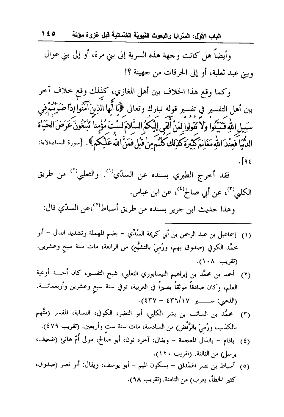 وكما وقع هذا الخلاف بين أهل المغازي، كذلك وقع خلاف آخر بين أهل التفسير في تفسير قوله تبارك وتعالى {يَا أَيُّها الَّذِينَ آمَنُواْ إِذَا ضَرَبْتُمْ فِي سَبِيلِ اللهِ فَتَبَيَّنُواْ وَلاً تَقُولُواْ لِمَنْ أَلْقَى إِلَيْكُمُ السَّلامَ لَسْتَ مُؤْمِناً تَبْتَغُونَ عَرَضَ الْحَيَاة الدُّنْيَا فَعِنْدَ اللهِ مَغَانِمَ كَثِيرَة كَذَلِكَ كُنْتُم مِنْ قَبْل فَمَنَّ اللهُ عَلَيْكُم} . [سورة النساء، الآية: "94] ".