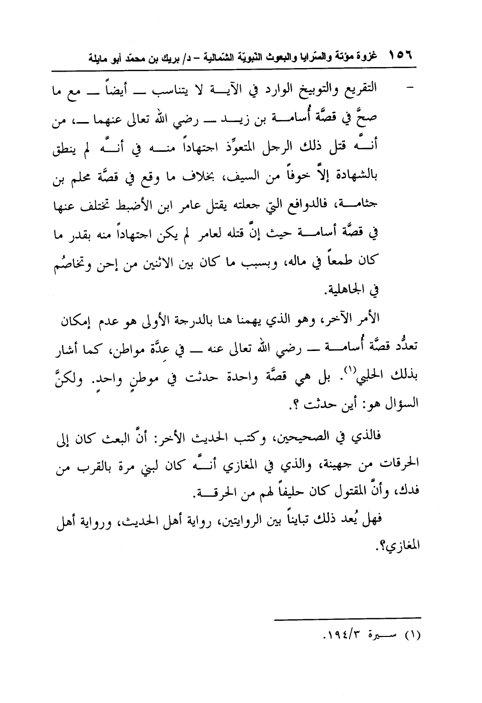 الأمر الآخر، وهو الذي يهمنا هنا بالدرجة الأولى هو عدم إمكان تعدُّد قصَّة أُسامة - رضي الله تعالى عنه - في عِدَّة مواطن، كما أشار بذلك الحلبي1". بل هي قصَّة واحدة حدثت في موطنٍ واحدٍ". ولكنَّ السؤال هو: "أين حدثت؟ ".