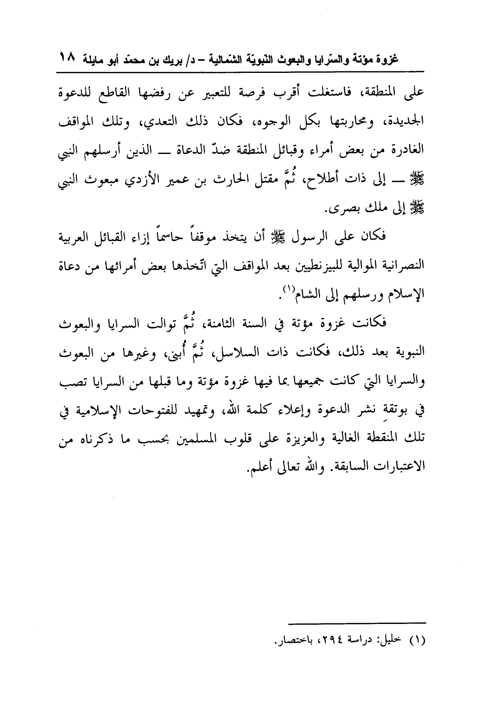 فكانت غزوة مؤتة في السنة الثامنة، ثُمَّ توالت السرايا والبعوث النبوية بعد ذلك، فكانت ذات السلاسل، ثُمَّ أُبنى، وغيرها من البعوث والسرايا التي كانت جميعها بما فيها غزوة مؤتة وما قبلها من السرايا تصب في بوتقةِ نشر الدعوة وإعلاء كلمة الله، وتمهيد للفتوحات الإسلامية في تلك المنقطة الغالية والعزيزة على قلوب المسلمين بحسب ما ذكرناه من الاعتبارات السابقة. والله تعالى أعلم.