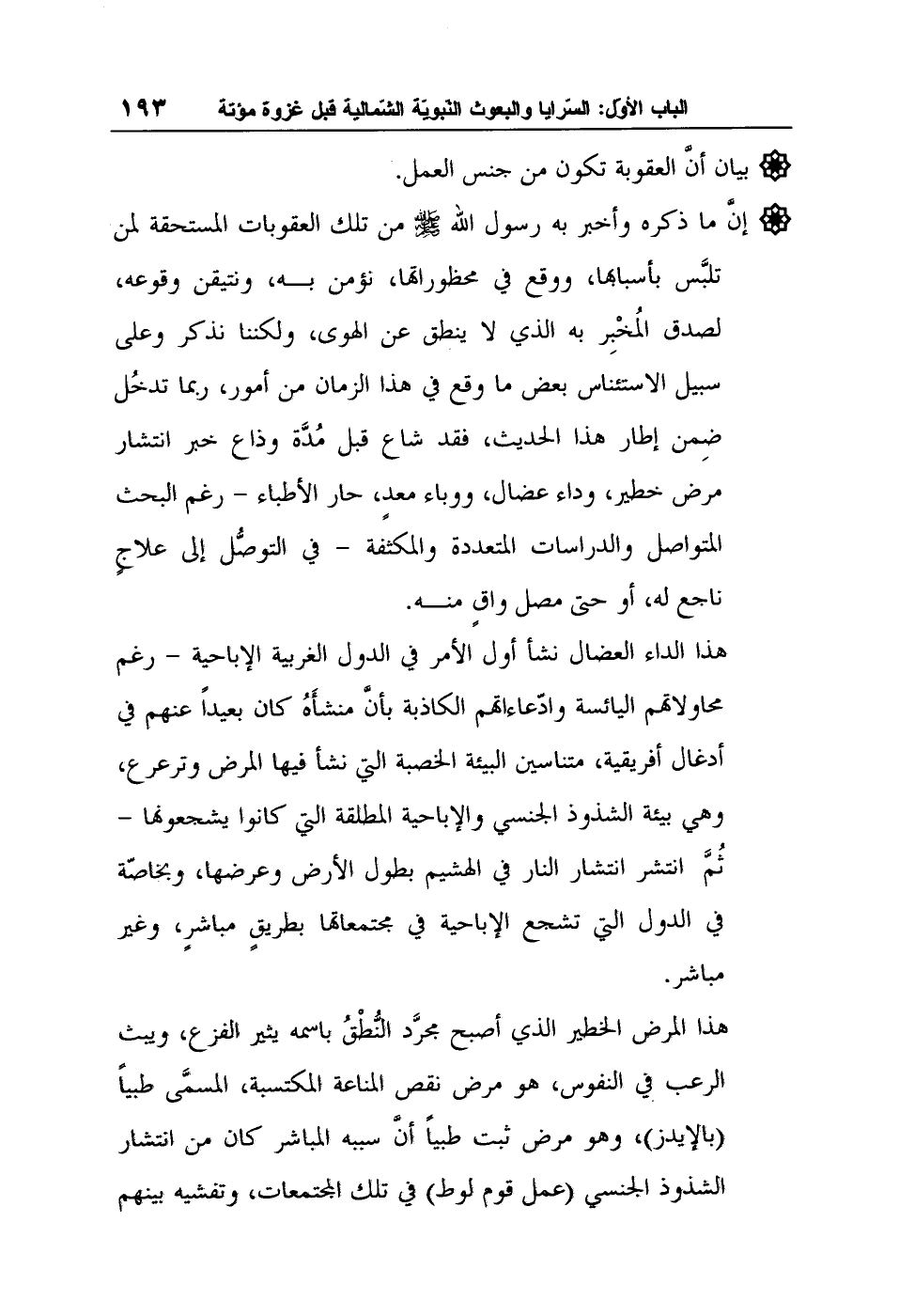 هذا المرض الخطير الذي أصبح مجرَّد النُّطْقُ باسمه يثير الفزع، ويبث الرعب في النفوس، هو مرض نقص المناعة المكتسبة، المسمَّى طبياً (بالإيدز) ، وهو مرض ثبت طبياً أنَّ سببه المباشر كان من انتشار الشذوذ الجنسي (عمل قوم لوط) في تلك المجتمعات، وتفشيه بينهم