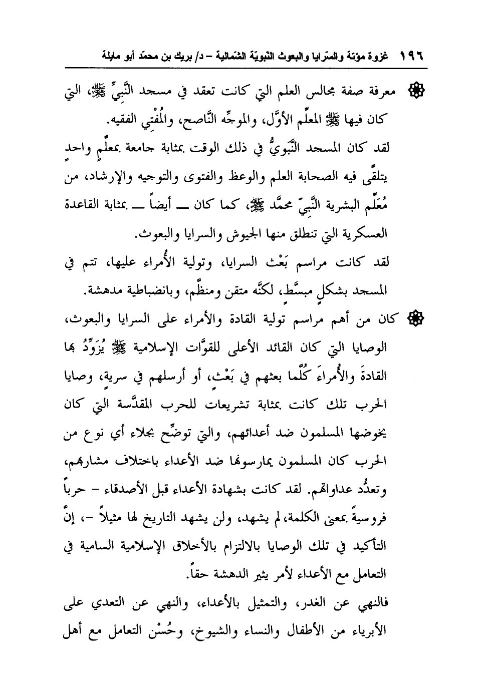 لقد كانت مراسم بَعْث السرايا، وتولية الأُمراء عليها، تتم في المسجد بشكلٍ مبسَّطٍ، لكنَّه متقن ومنظَّم، وبانضباطية مدهشة".