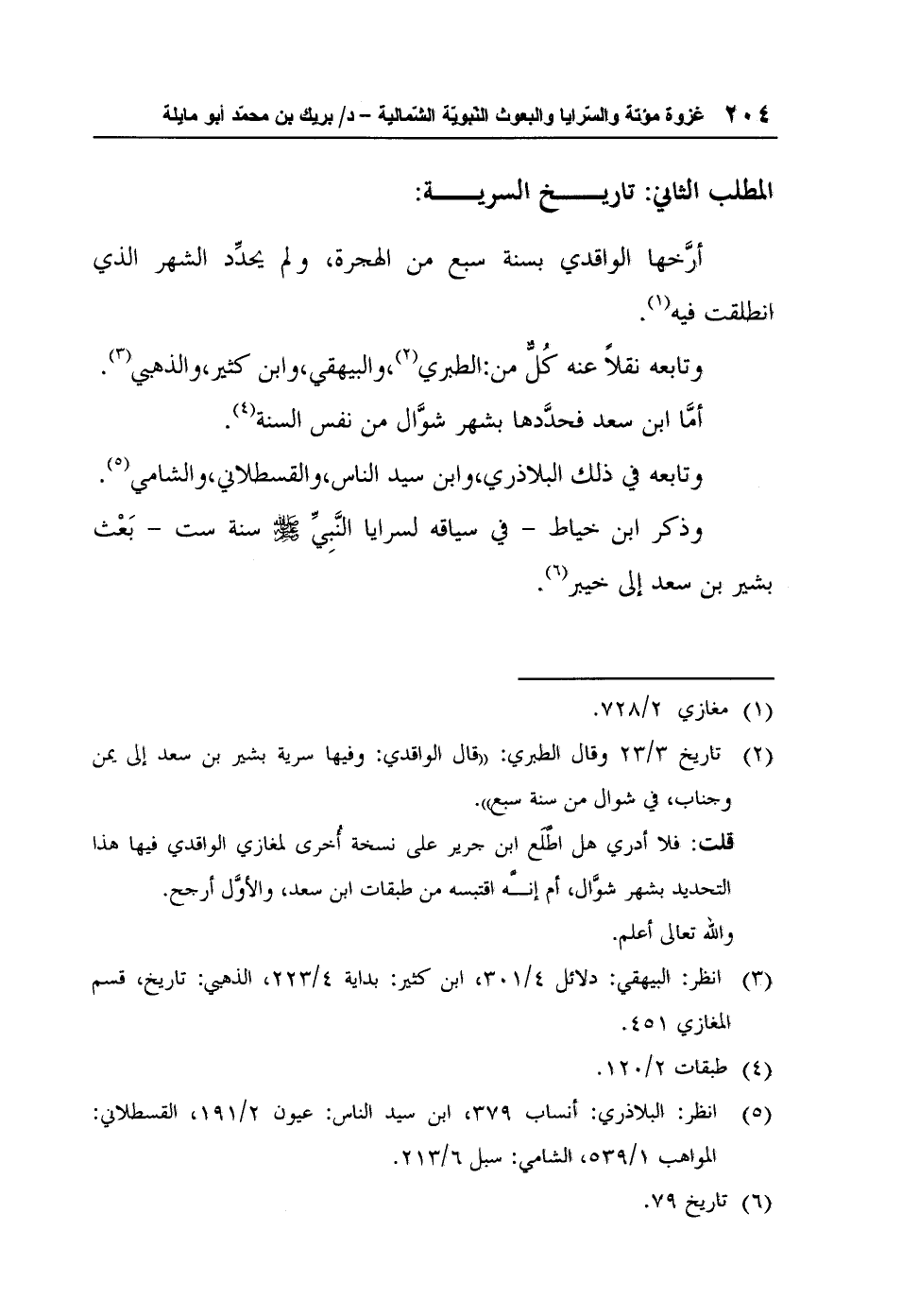 5 انظر: البلاذري: أنساب 379، ابن سيد الناس: عيون 2/191، القسطلاني: المواهب 1/539، الشامي: سبل 6/213.