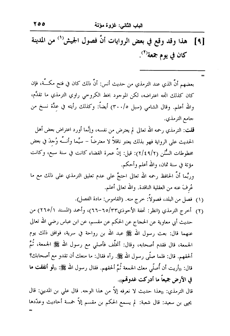 [9] هذا وقد وقع في بعض الروايات أنَّ فصول الجيش1 من المدينة كان في يوم جمعة2".