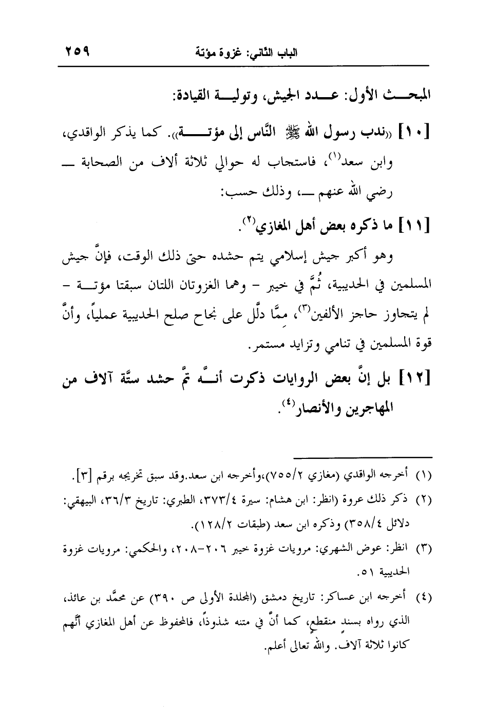4 أخرجه ابن عساكر: تاريخ دمشق (المجلدة الأولى ص 390) عن محمَّد بن عائذ، الذي رواه بسندٍ منقطعٍ، كما أنَّ في متنه شذوذاً، فالمحفوظ عن أهل المغازي أنَّهم كانوا ثلاثة آلاف. والله تعالى أعلم.