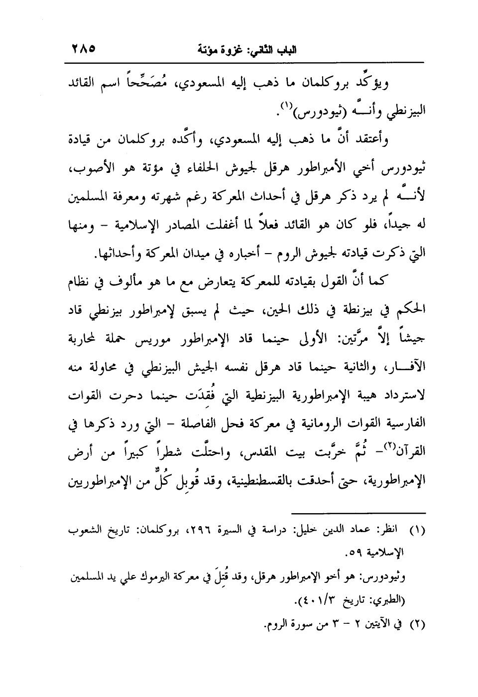 ويؤكِّد بروكلمان ما ذهب إليه المسعودي، مُصَحِّحاً اسم القائد البيزنطي وأنه (ثيودورس) 1.