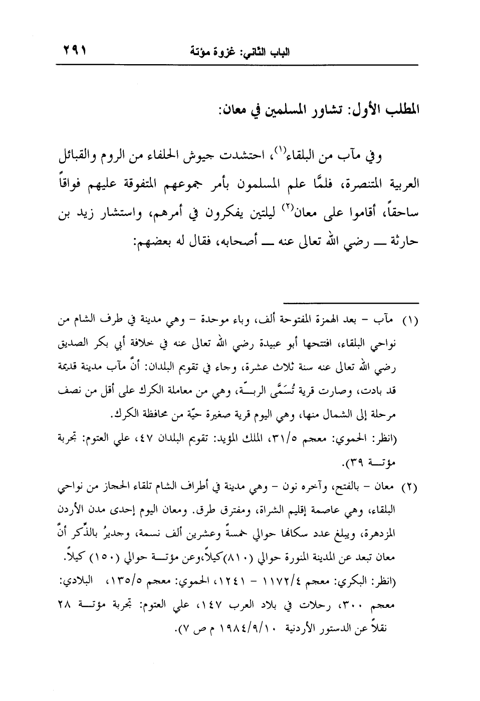 (انظر: الحموي: معجم 5/31، الملك المؤيد: تقويم البلدان 47، علي العتوم: تجربة مؤتة 39) .