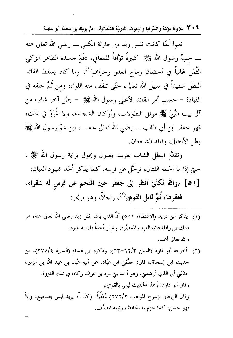 [51] "والله لكأني أنظر إلى جعفر حين اقتحم عن فرسٍ له شقراء، فعقرها، ثُمَّ قاتل القوم"2، راجلاً، وهو يرتجز: