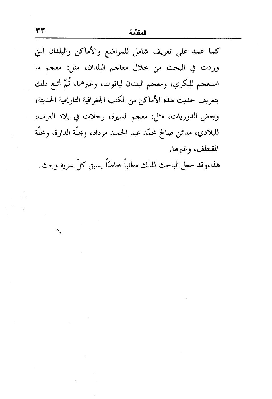 كما عمد على تعريف شامل للمواضع والأماكن والبلدان التي وردت في البحث من خلال معاجم البلدان، مثل: معجم ما استعجم للبكري، ومعجم البلدان لياقوت، وغيرهما، ثُمَّ أتبع ذلك بتعريف حديث لهذه الأماكن من الكتب الجغرافية التاريخية الحديثة، وبعض الدوريات، مثل: معجم السيرة، رحلات في بلاد العرب، للبلادي، مدائن صالح لمحمّد عبد الحميد مرداد، ومجلّة الدارة، ومجلّة المقتطف، وغيرها.