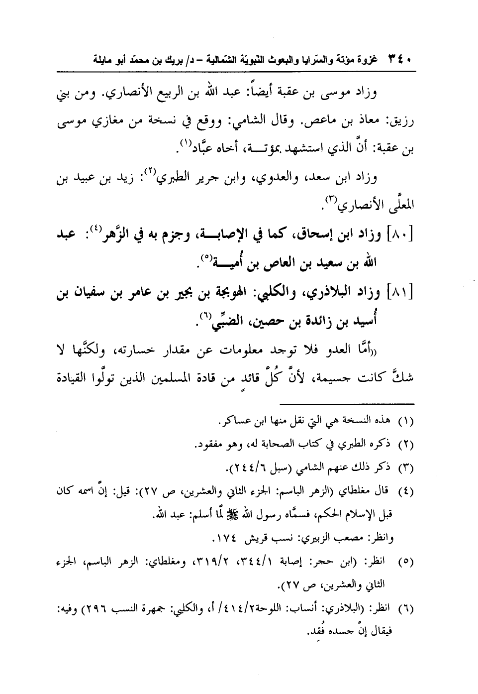 5 انظر: (ابن حجر: إصابة 1/344، 2/319، ومغلطاي: الزهر الباسم، الجزء الثاني والعشرين، ص 27) .