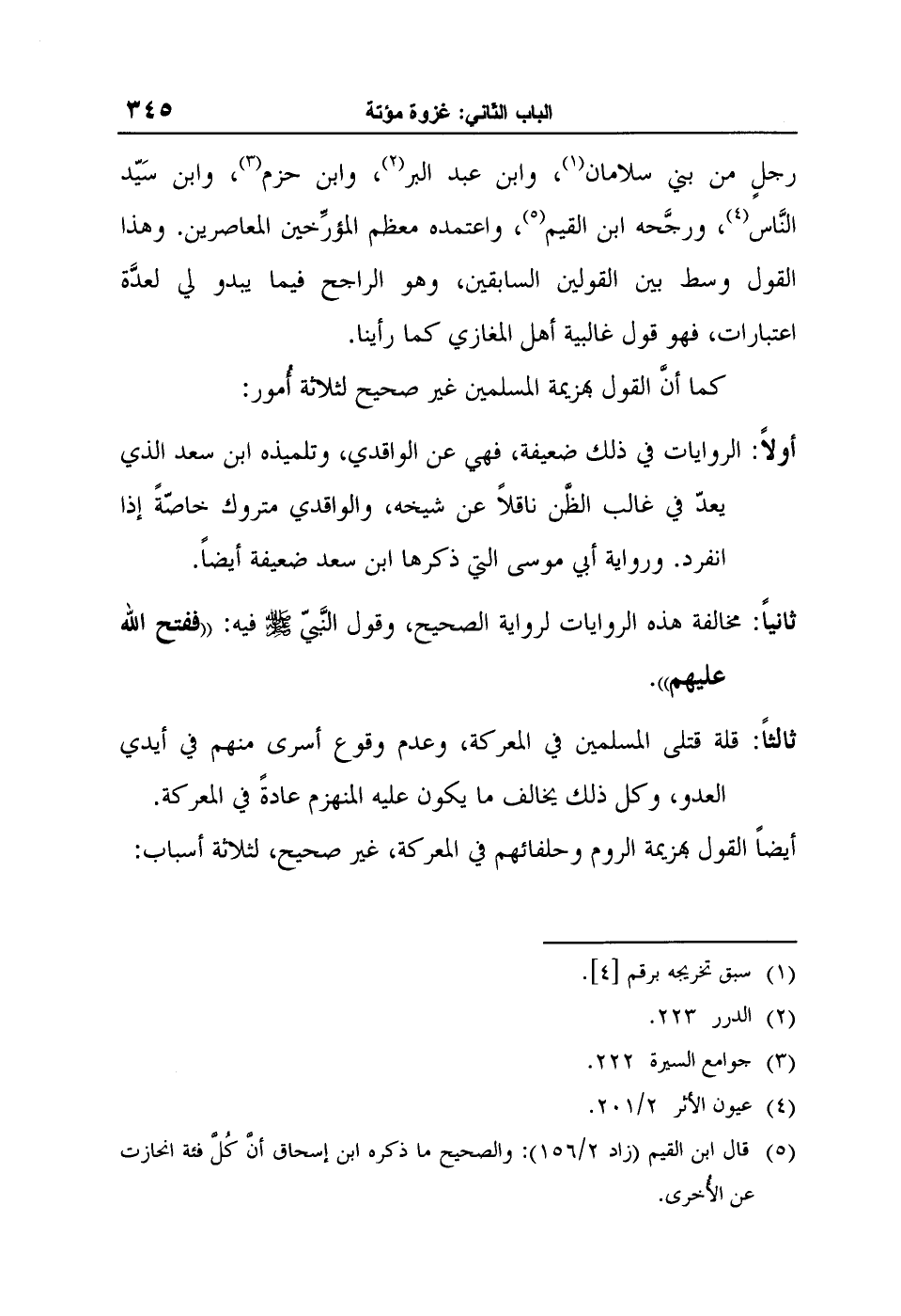 رجلٍ من بني سلامان1، وابن عبد البر2، وابن حزم3، وابن سَيّد النَّاس4، ورجَّحه ابن القيم5، واعتمده معظم المؤرِّخين المعاصرين. وهذا القول وسط بين القولين السابقين، وهو الراجح فيما يبدو لي لعدَّة اعتبارات، فهو قول غالبية أهل المغازي كما رأينا.