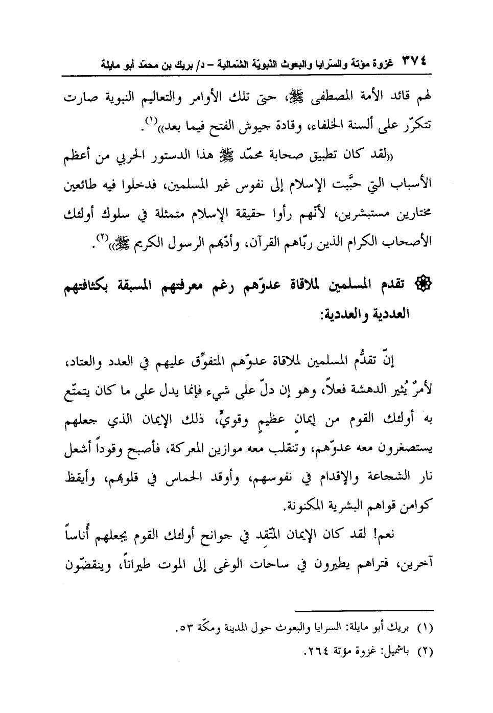 لهم قائد الأمة المصطفى صلى الله عليه وسلم، حتى تلك الأوامر والتعاليم النبوية صارت تتكرّر على ألسنة الخلفاء، وقادة جيوش الفتح فيما بعد"1.