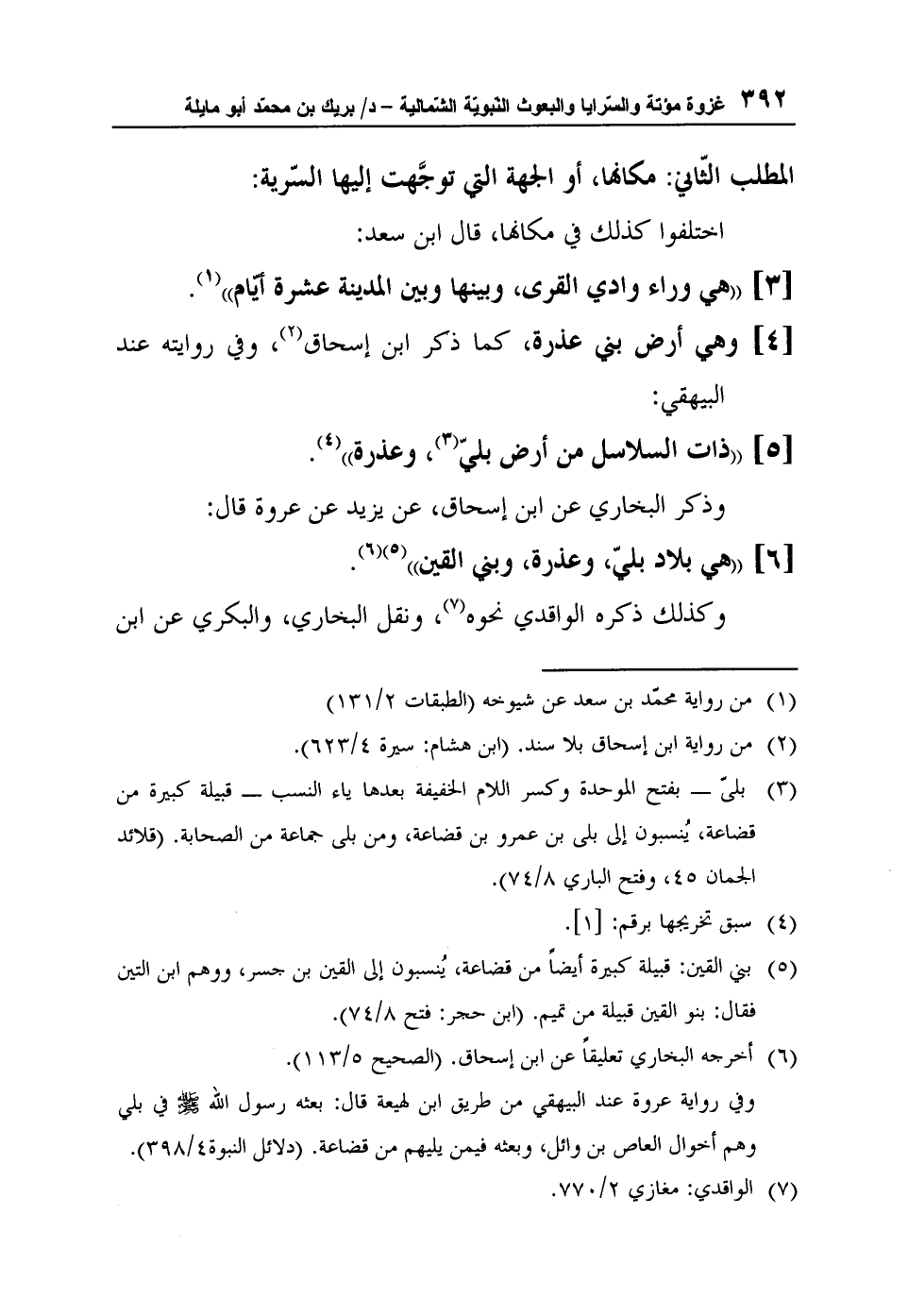 المطلب الثّاني: مكانها، أو الجهة التي توجَّهت إليها السّرية: