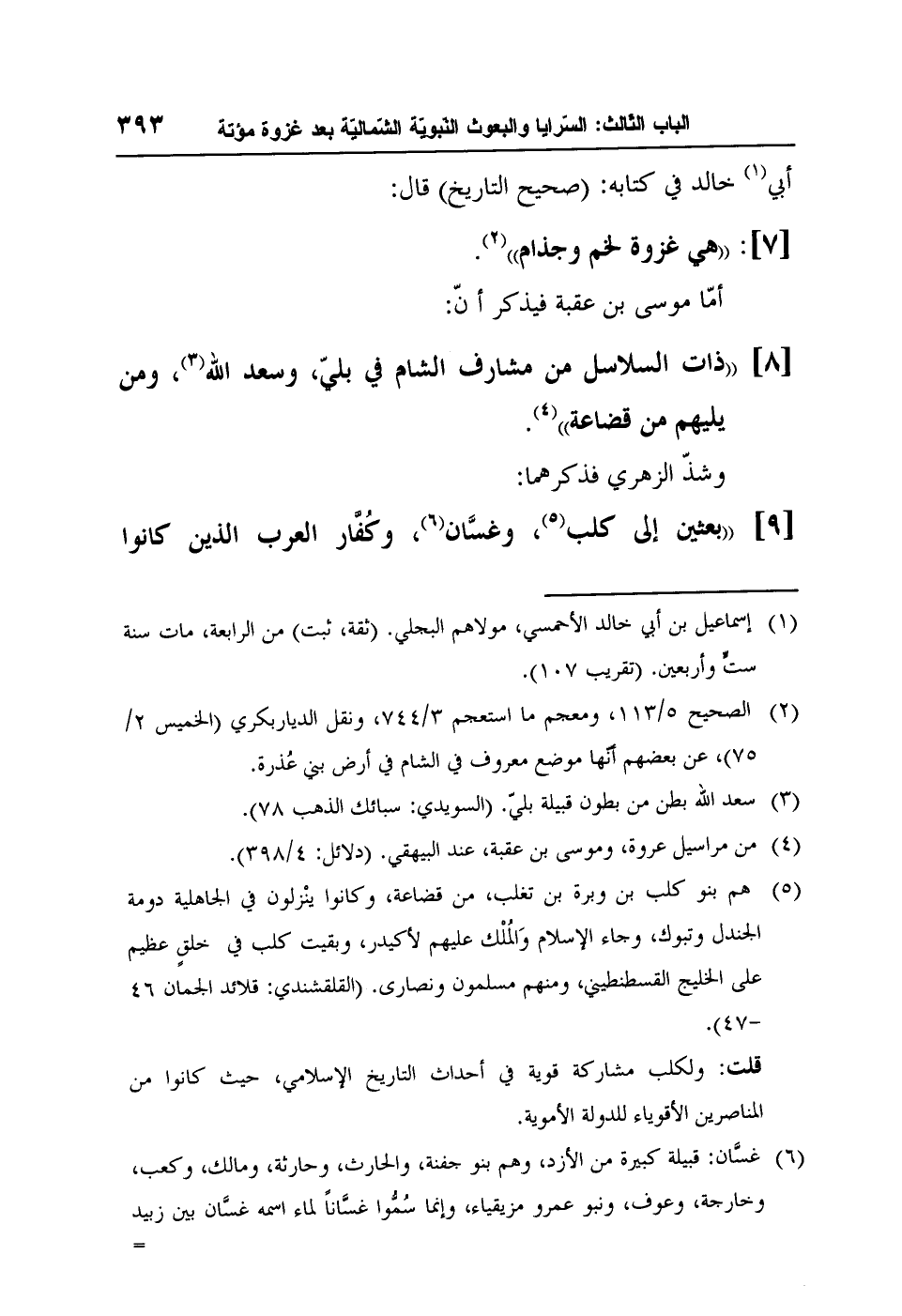 [9] "بعثين إلى كلب5، وغسَّان6، وكُفَّار العرب الذين كانوا