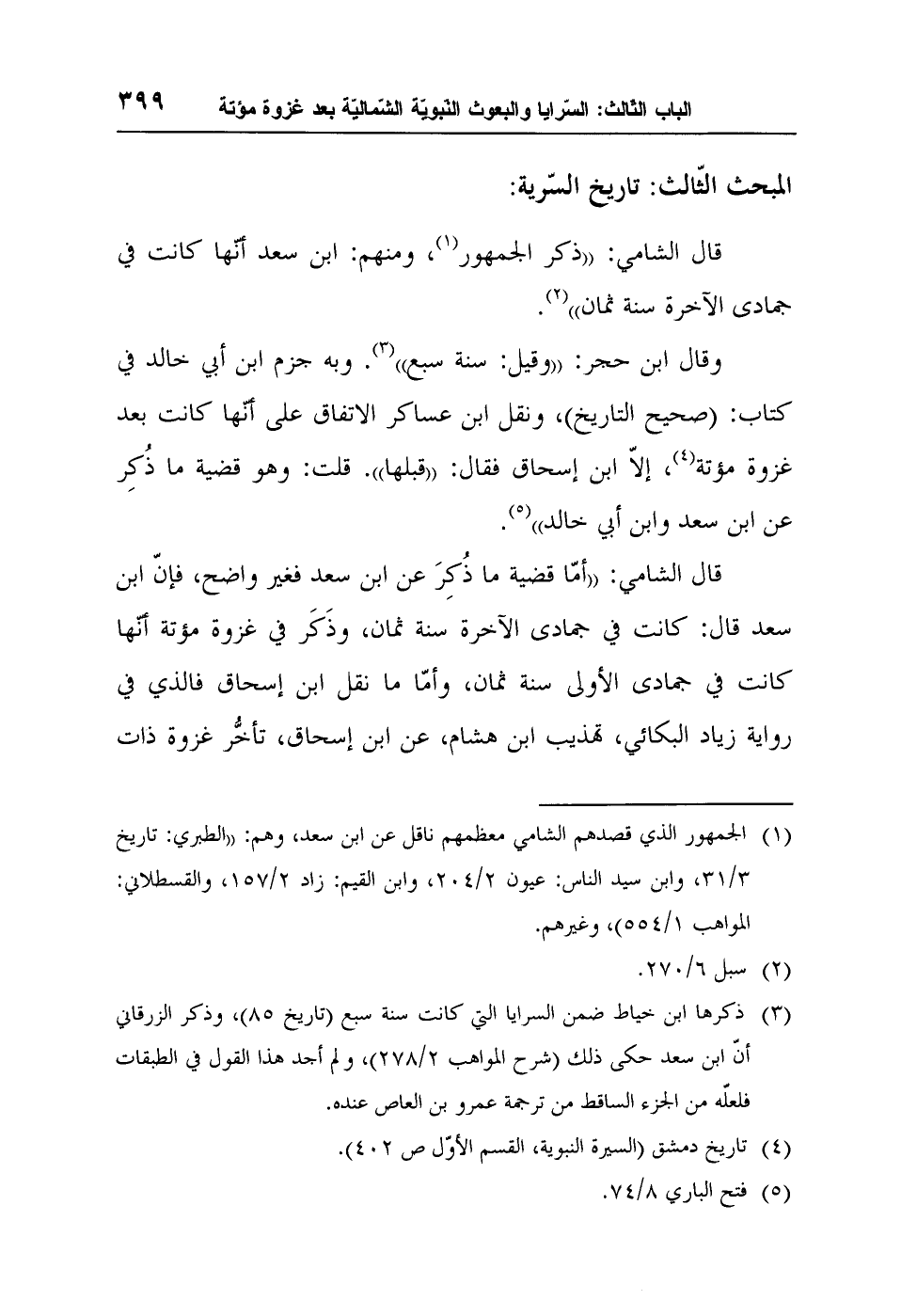 1 الجمهور الذي قصدهم الشامي معظمهم ناقل عن ابن سعد، وهم: "الطبري: تاريخ 3/31، وابن سيد الناس: عيون 2/204، وابن القيم: زاد 2/157، والقسطلاني: المواهب 1/554"، وغيرهم.
