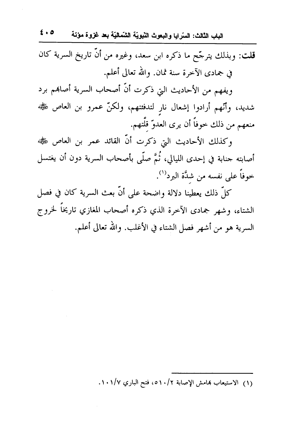 قلت: وبذلك يترجّح ما ذكره ابن سعد، وغيره من أنّ تاريخ السرية كان في جمادى الآخرة سنة ثمان. والله تعالى أعلم.