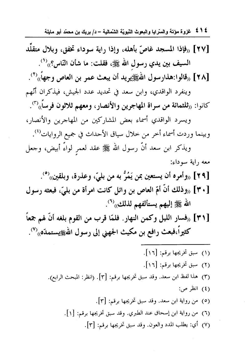 [30] "وذلك أنّ أمّ العاص بن وائل كانت امرأة من بليّ، فبعثه رسول الله صلى الله عليه وسلم إليهم يستألفهم لذلك"6.