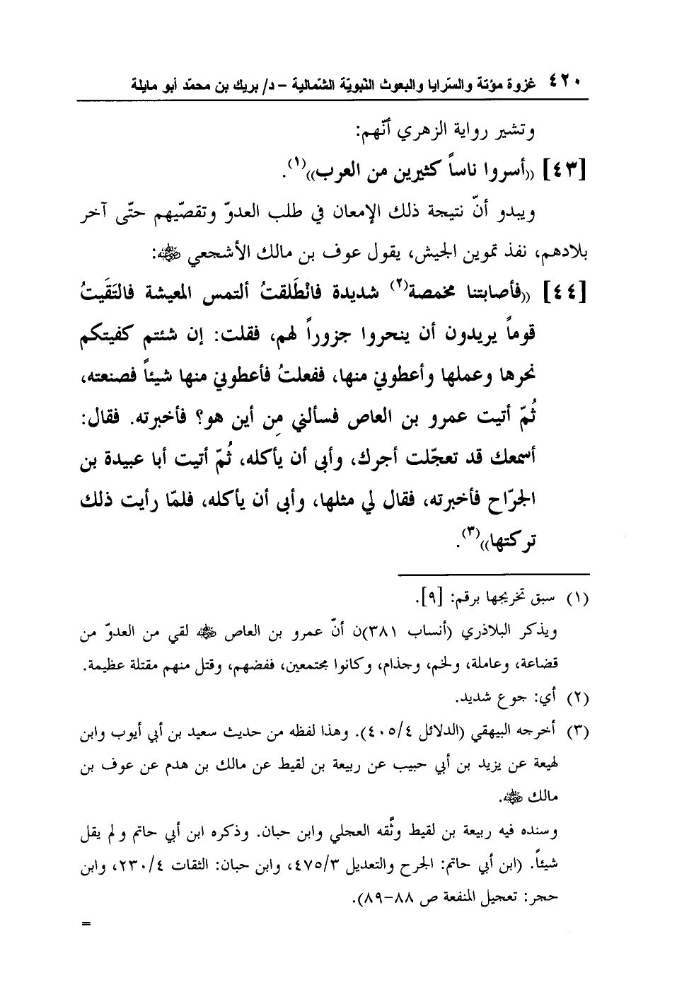 [43] "أسروا ناساً كثيرين من العرب"1.