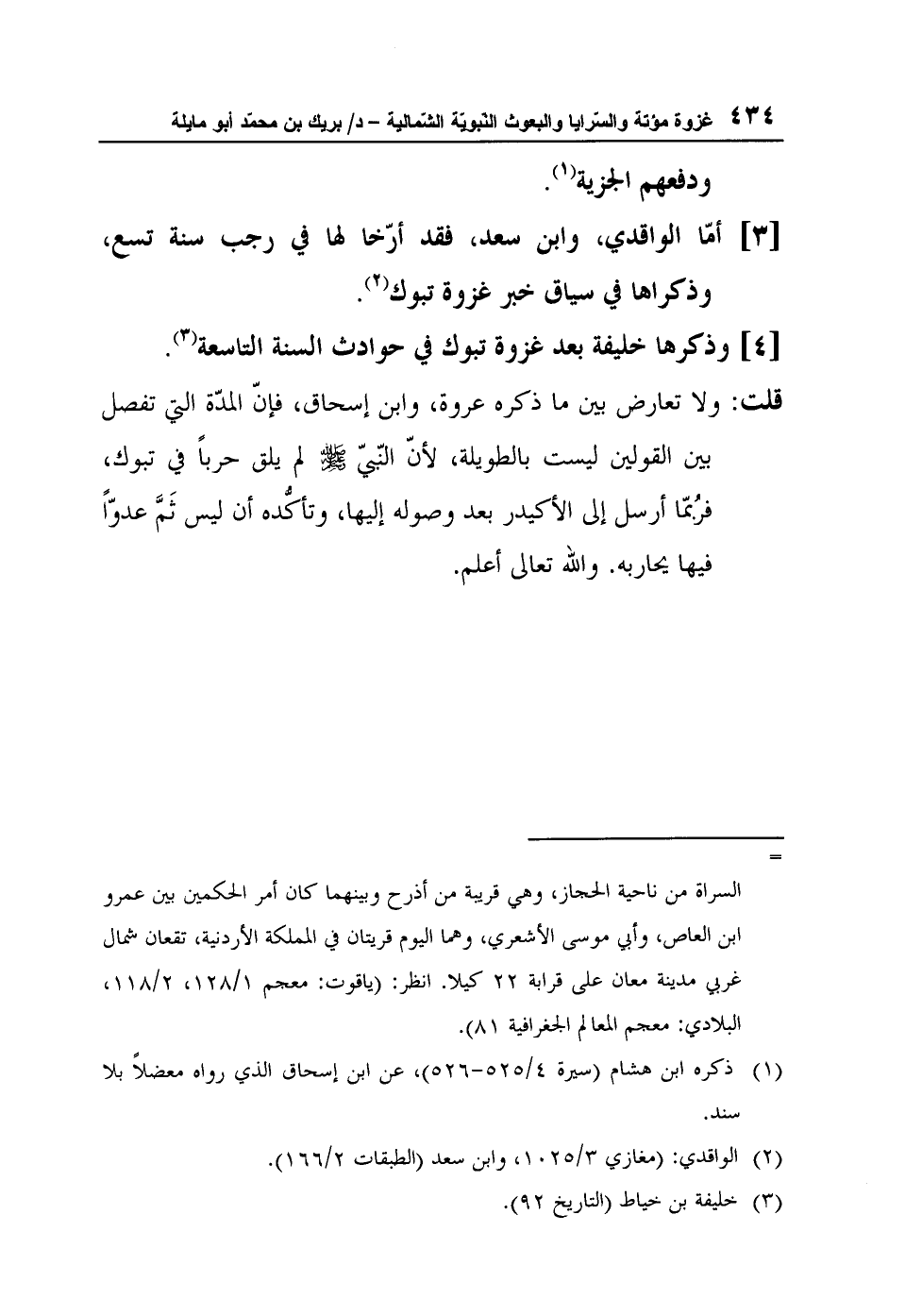 [4] وذكرها خليفة بعد غزوة تبوك في حوادث السنة التاسعة3.