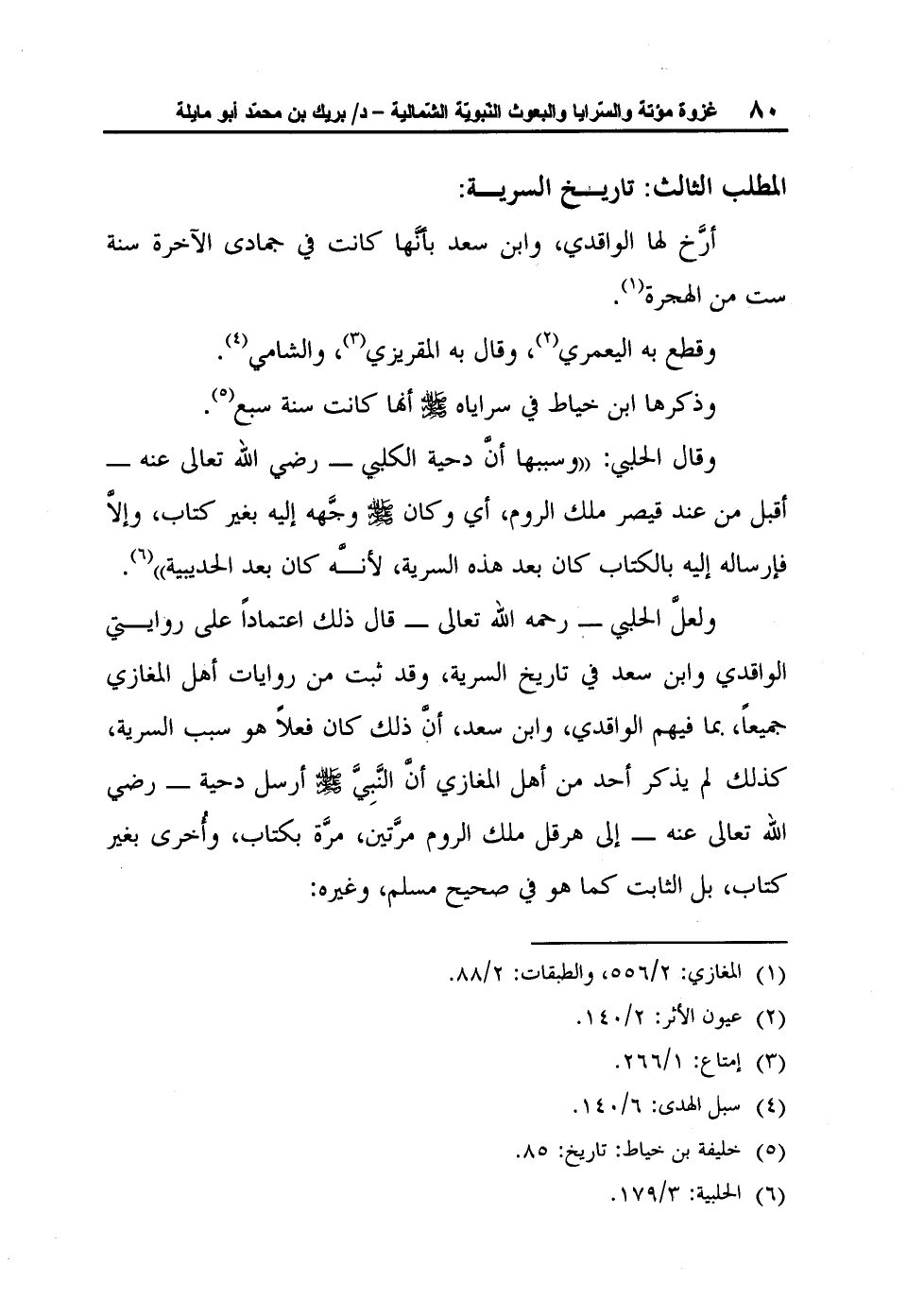 ولعلَّ الحلبي - رحمه الله تعالى - قال ذلك اعتماداً على روايتي الواقدي وابن سعد في تاريخ السرية، وقد ثبت من روايات أهل المغازي جميعاً، بما فيهم الواقدي، وابن سعد، أنَّ ذلك كان فعلاً هو سبب السرية، كذلك لم يذكر أحد من أهل المغازي أنَّ النَّبِيَّ صلى الله عليه وسلم أرسل دحية - رضي الله تعالى عنه - إلى هرقل ملك الروم مرَّتين، مرَّة بكتاب، وأُخرى بغير كتاب، بل الثابت كما هو في صحيح مسلم، وغيره: