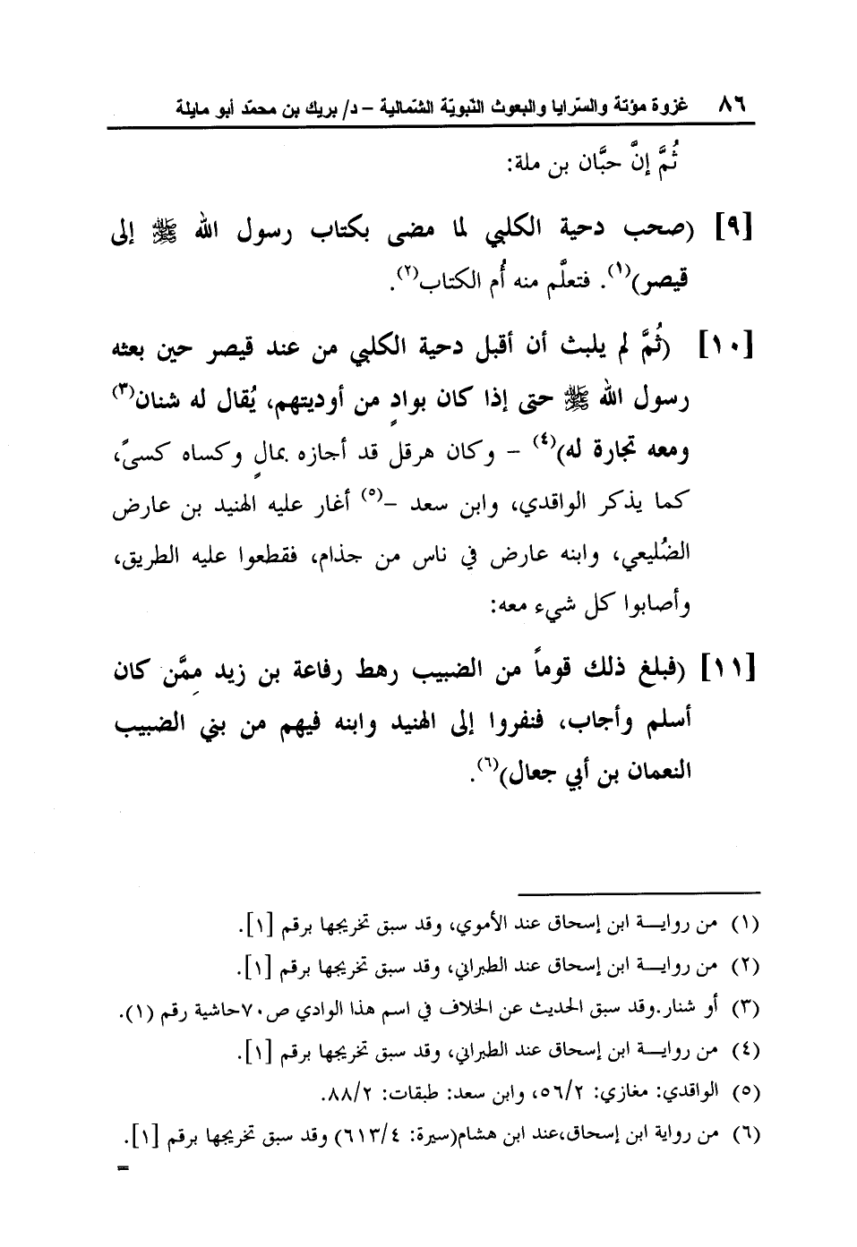 [9] "صحب دحية الكلبي لما مضى بكتاب رسول الله صلى الله عليه وسلم إلى قيصر"1. فتعلَّم منه أُم الكتاب2.