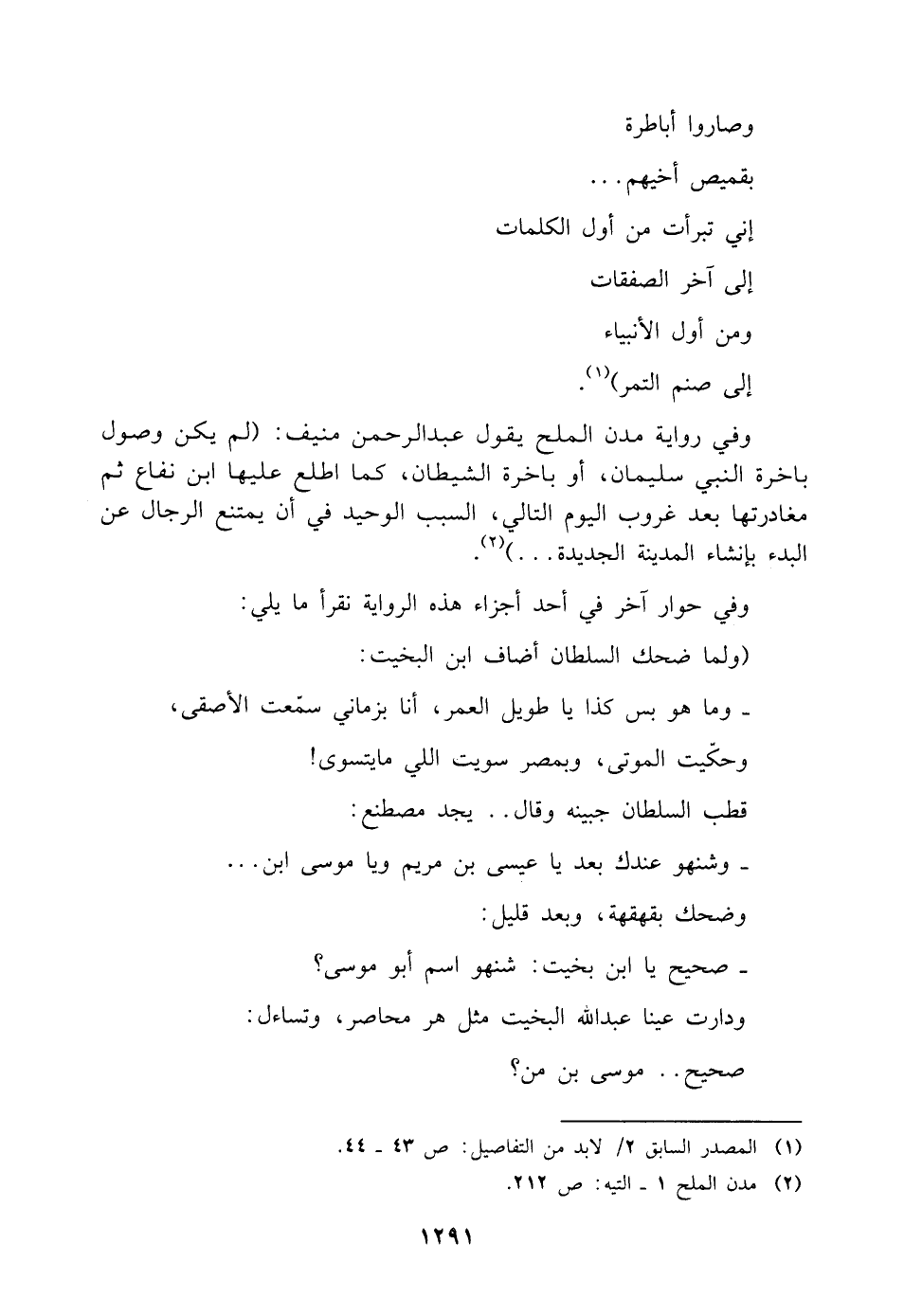 (¬٢) مدن الملح ١ - التيه: ص ٢١٢.