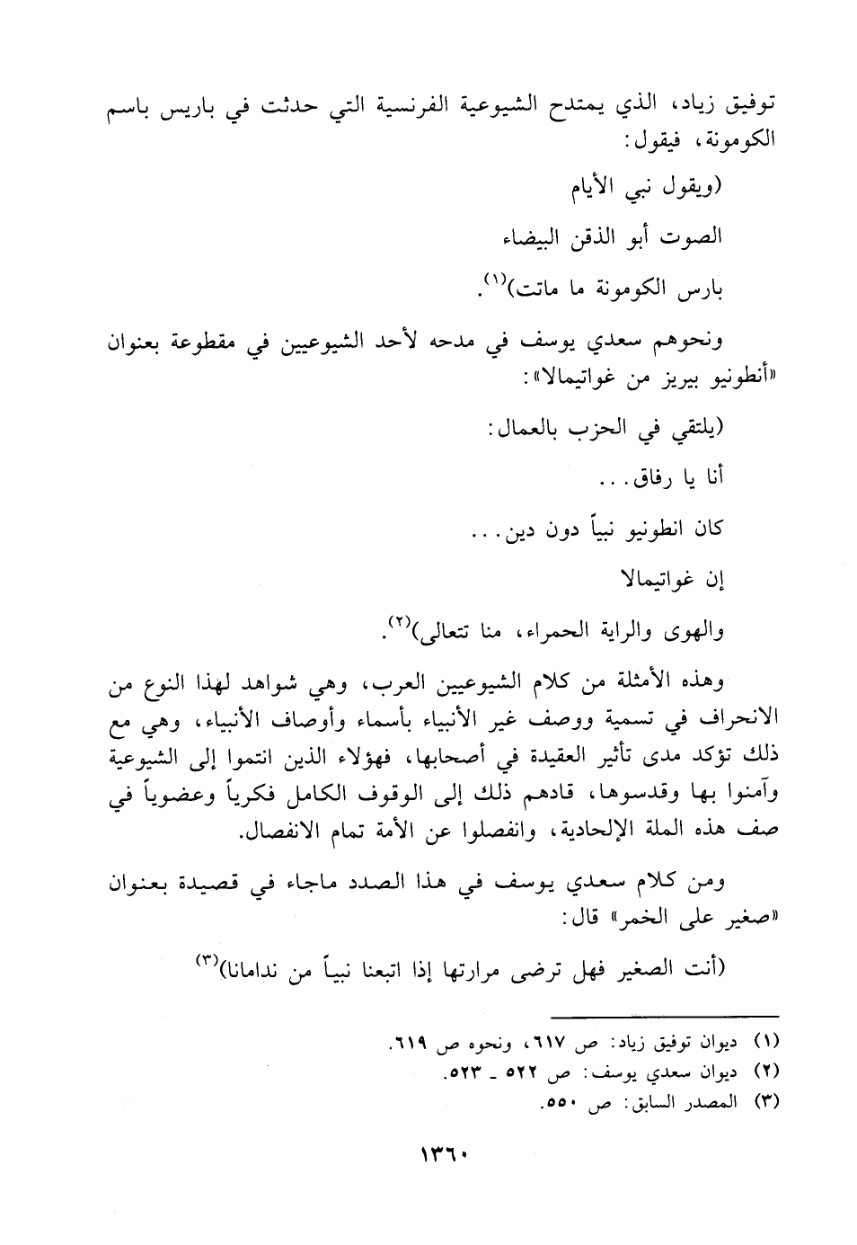 وهذه الأمثلة من كلام الشيوعيين العرب، وهي شواهد لهذا النوع من الانحراف في تسمية ووصف غير الأنبياء بأسماء وأوصاف الأنبياء، وهي مع ذلك تؤكد مدى تأثير العقيدة في أصحابها، فهؤلاء الذين انتموا إلى الشيوعية وآمنوا بها وقدسوها، قادهم ذلك إلى الوقوف الكامل فكريًا وعضويًا في صف هذه الملة الإلحادية، وانفصلوا عن الأمة تمام الانفصال.