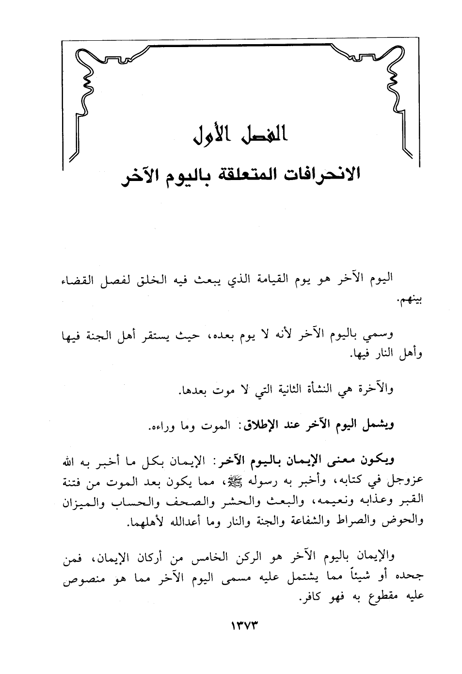 الفصل الأول الانحرافات المتعلقة باليوم الآخر