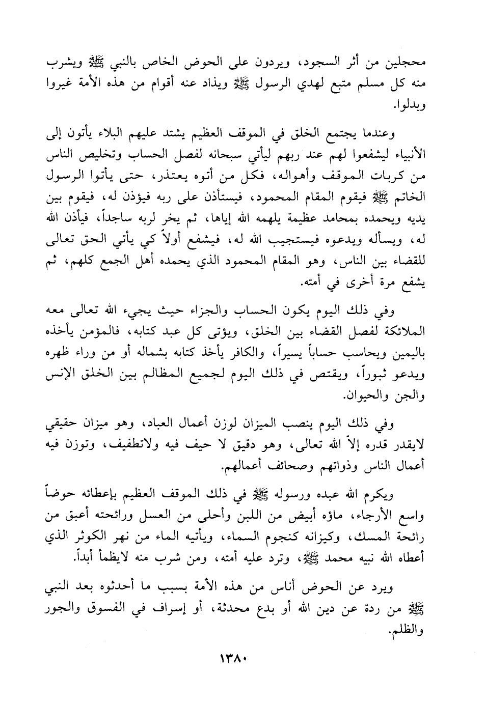 محجلين من أثر السجود، ويردون على الحوض الخاص بالنبي -صلى اللَّه عليه وسلم- ويشرب منه كل مسلم متبع لهدي الرسول -صلى اللَّه عليه وسلم- ويذاد عنه أقوام من هذه الأمة غيروا وبدلوا.