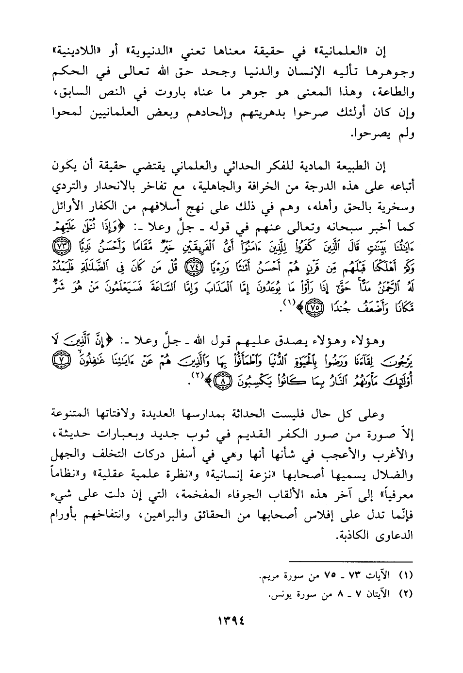 (¬٢) الآيتان ٧ - ٨ من سورة يونس.