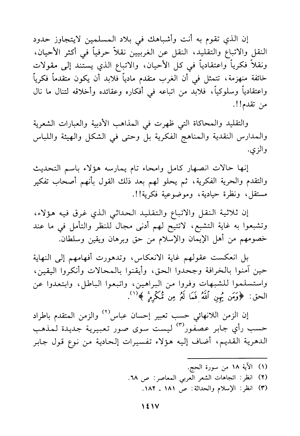 (¬٣) انظر: الإسلام والحداثة: ص ١٨١ - ١٨٢.