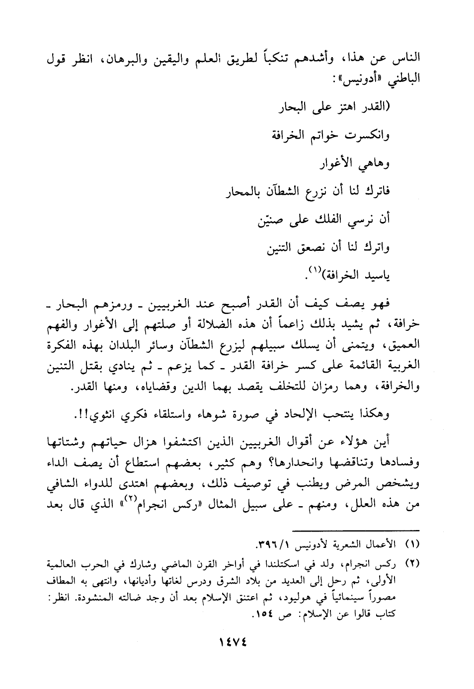 الناس عن هذا، وأشدهم تنكبًا لطريق العلم واليقين والبرهان، انظر قول الباطني "أدونيس":