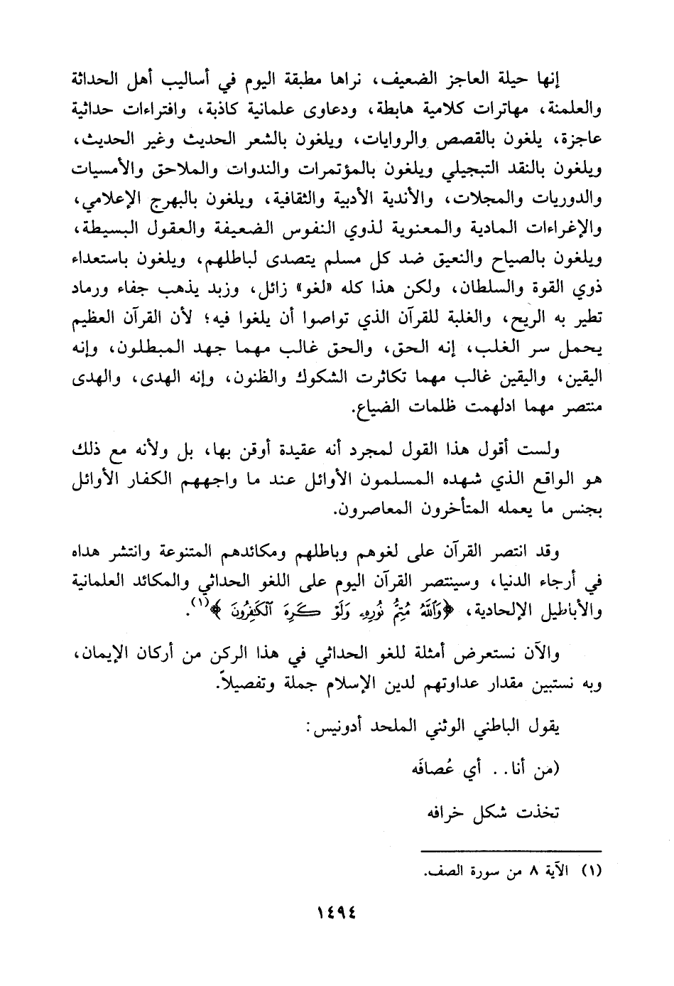 يقول الباطني الوثني الملحد أدونيس: