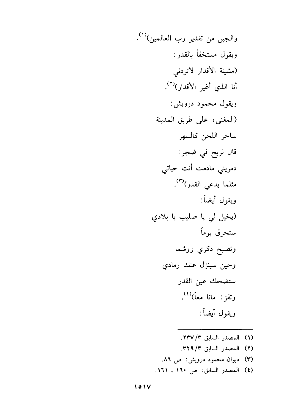 (¬٣) ديوان محمود درويش: ص ٨٦.