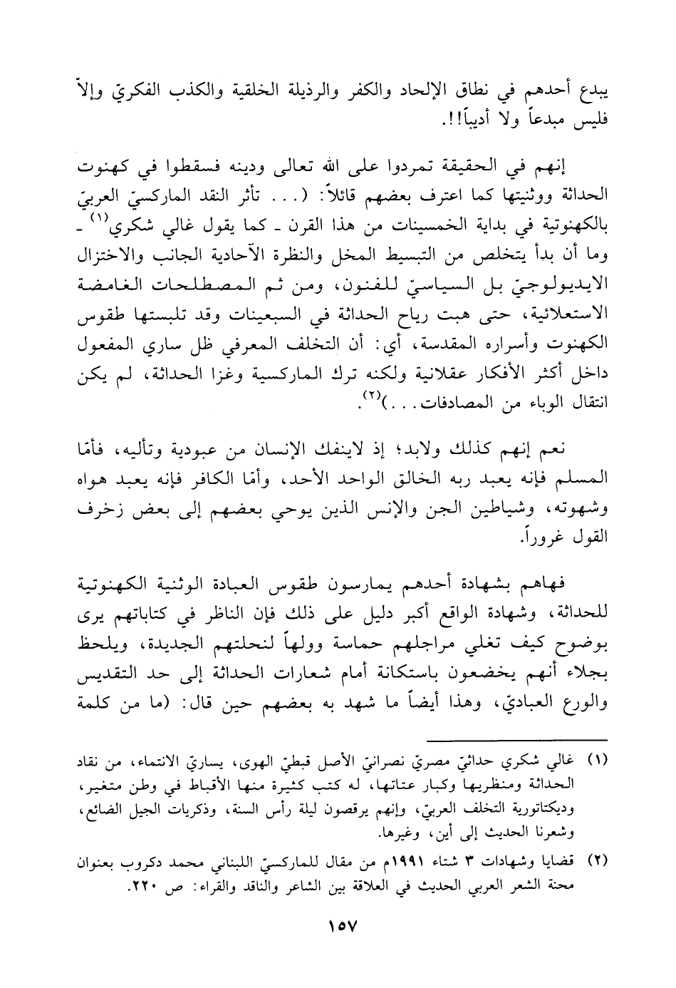 (¬٢) قضايا وشهادات ٣ شتاء ١٩٩١ م من مقال للماركسيّ اللبناني محمد دكروب بعنوان محنة الشعر العربي الحديث في العلاقة بين الشاعر والناقد والقراء: ص ٢٢٠.