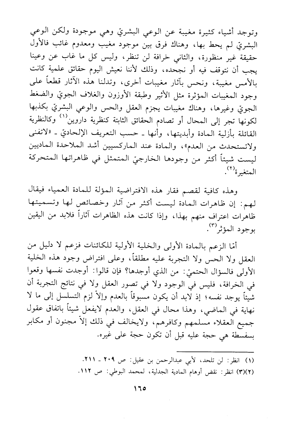 (¬٢) و (¬٣) انظر: نقض أوهام المادية الجدلية، لمحمد البوطي: ص ١١٢.