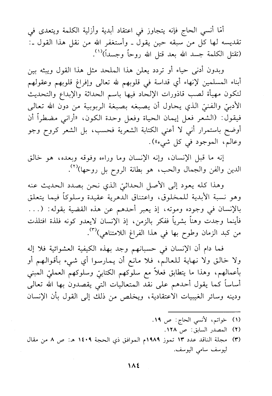 كتاب الانحراف العقدي في أدب الحداثة وفكرها (اسم الجزء: 1)